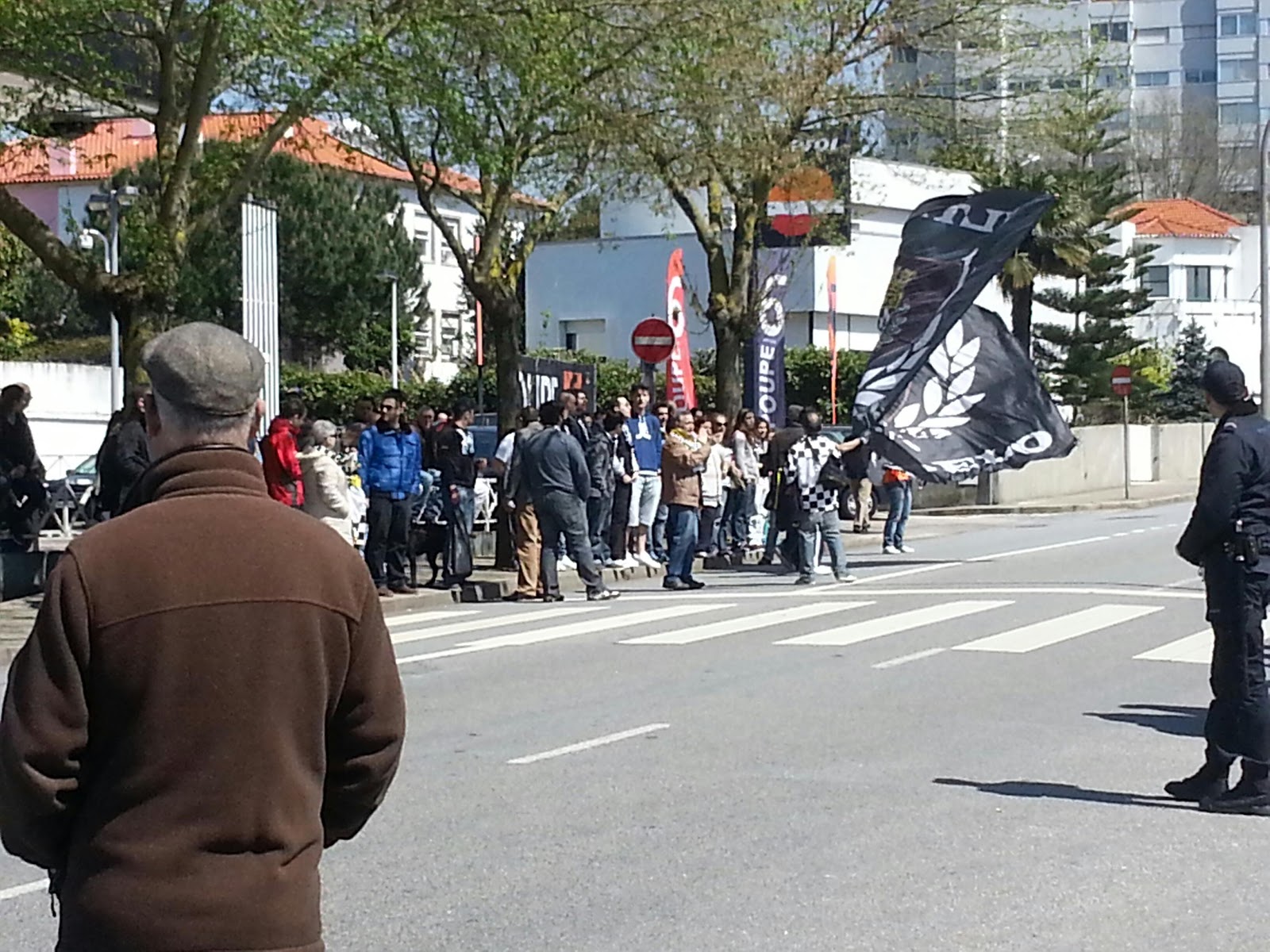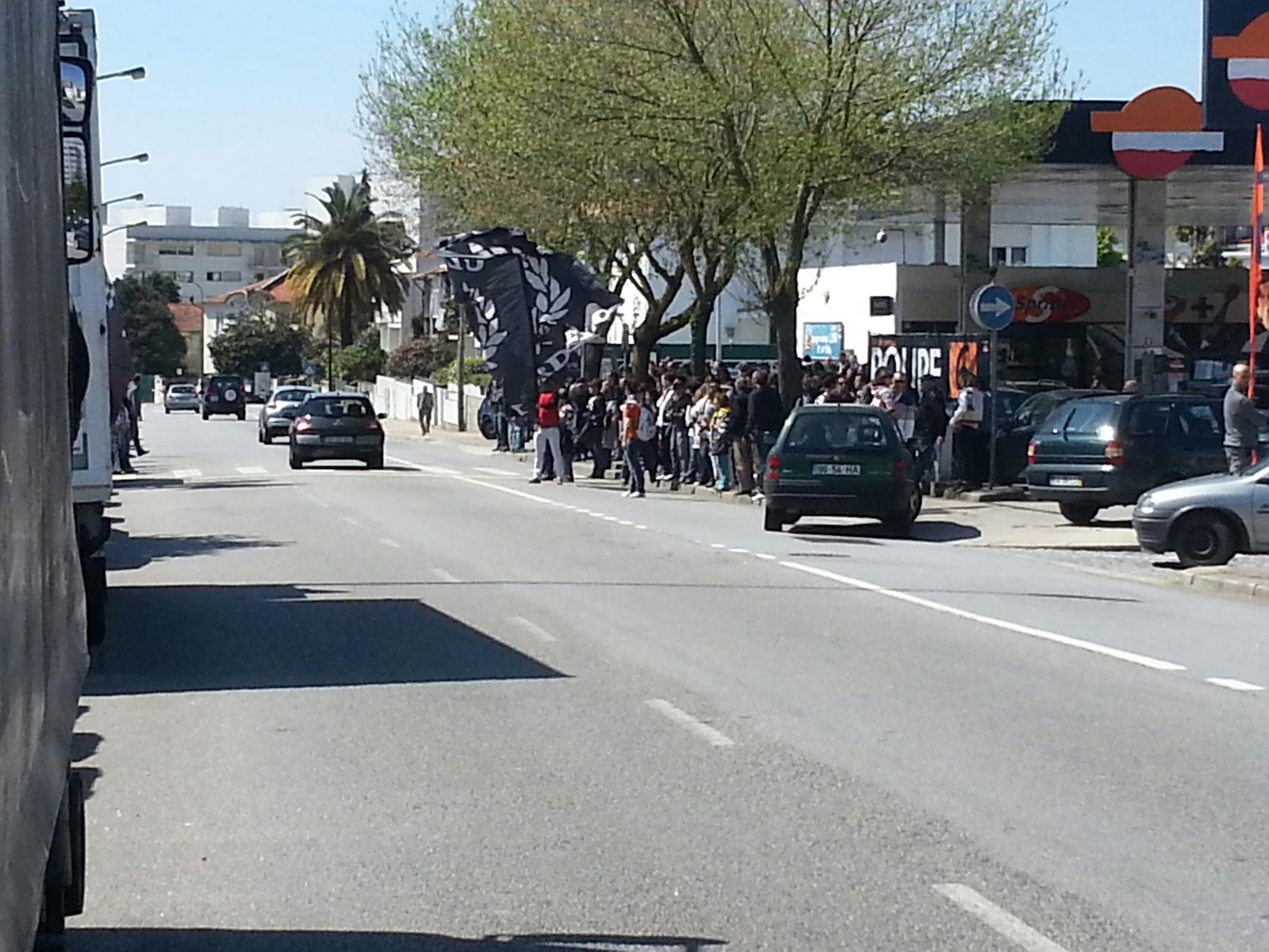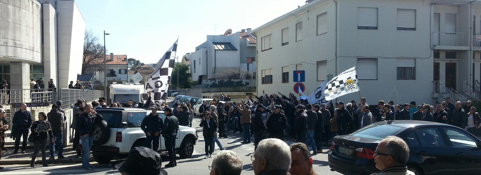 Grande presença junto à sede da liga, enormes a elevar bem alto o símbolo Boavista, de forma ordeira e entusiasta.